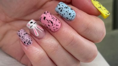 These long navy square-shaped nails are like autumn’s richness through which a stream of gold, silver and colorful glitter is seen, very similar to fallen leaves on a crisp autumn day. These nails resonate with the inner person who seeks solace in the transition of seasons and the lively hues of the natural cycle. These nails are suitable for beanie sweaters and other clothing items in brown or other earthy tones.