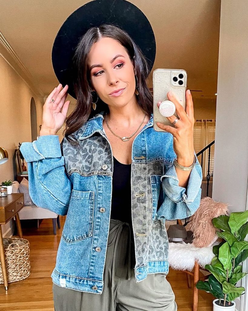 A bold denim jacket with leopard-print patchwork—this one is for the woman who wants to stand out and express her personality.
