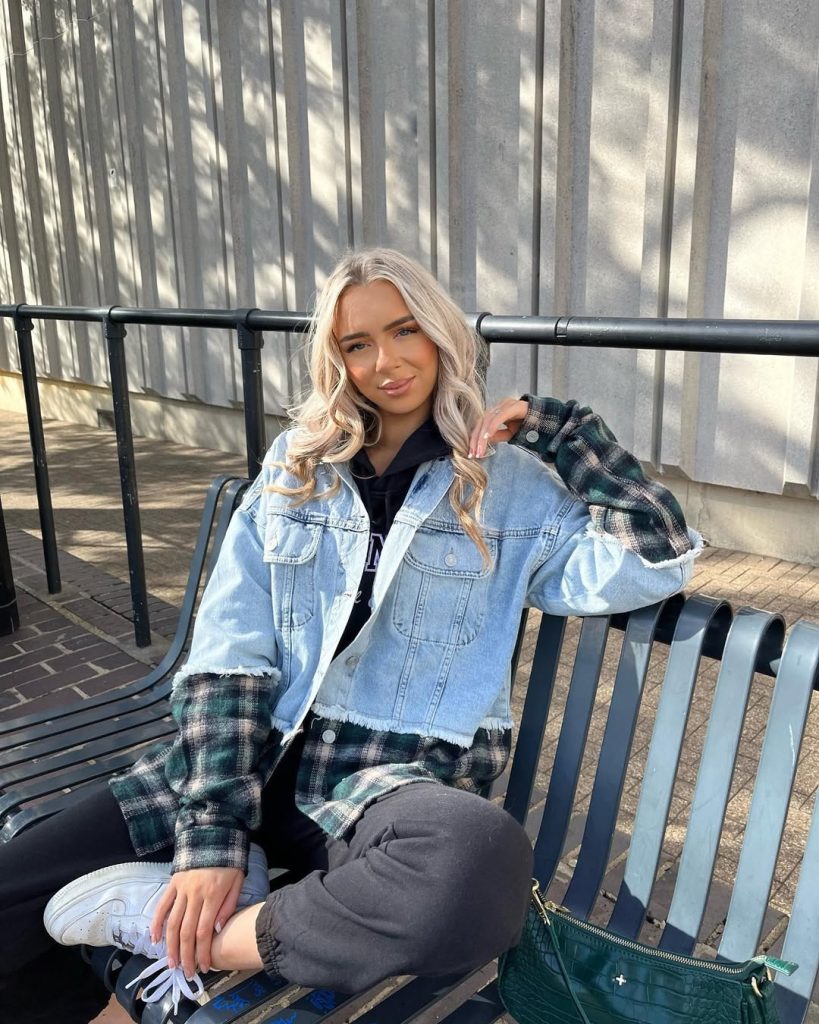 Incredible amalgam of layers combining denim with plaid, issuing the first hint of the 2026 streetwear vibe.