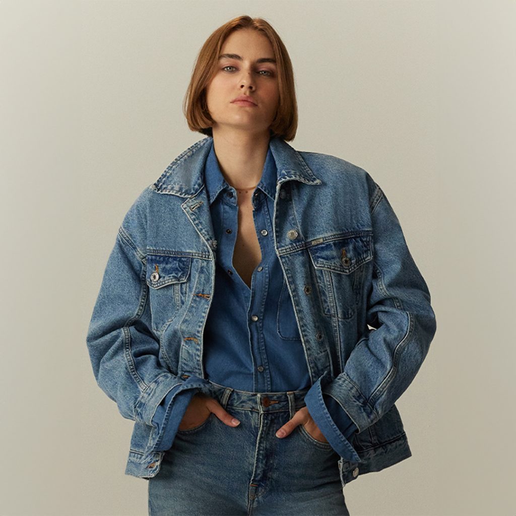 A refined, modern denim combination featuring an oversized jacket paired with dark denim—ideal for fans of minimalism and the elevated street-style aesthetic of 2026.