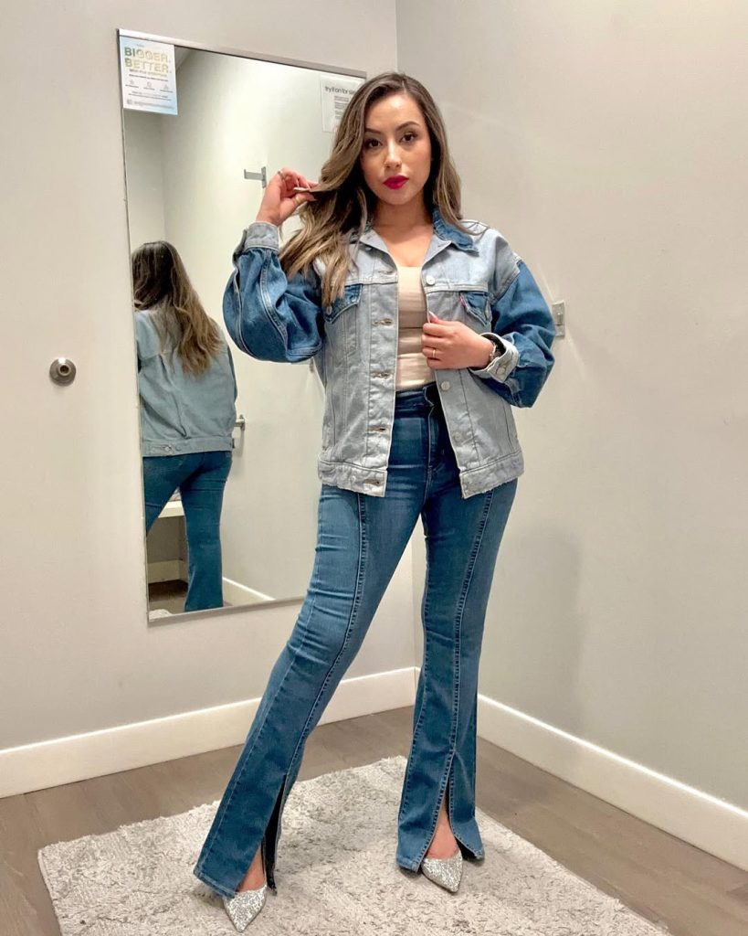 With slightly puffed sleeves and split-hem jeans, this cut is a flattering take on the 2026 denim style—feminine, yet still streamlined and not too over the top.