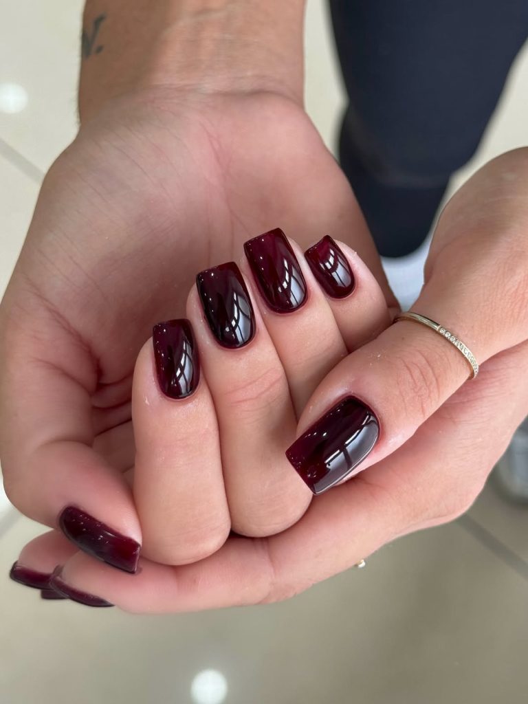 This look is particularly complementary for short or medium square nails, providing strength yet maintaining practicality. The darker hues are ideal for autumn and winter, and they look great with silver rings or a weekend evening outfit. It’s a no-fuss option that’s still bold yet not over-the-top—a no-art-needed manicure that speaks for itself.