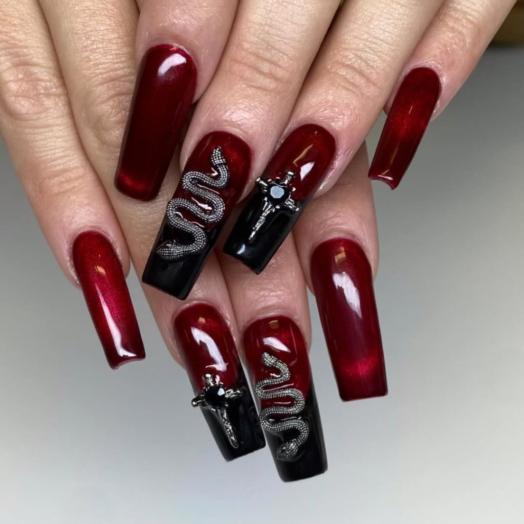 6. Crimson Serpent Gothic Nails