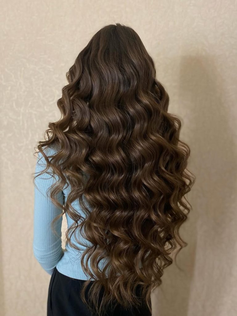 These waves feel rich, classic, and quietly dramatic. The definition through the length gives long hair a strong presence, while the smooth finish keeps it elegant rather than overwhelming. This style feels timeless—the kind of hair that never really goes out of fashion because it simply works. It highlights the beauty of healthy length and well-maintained texture.