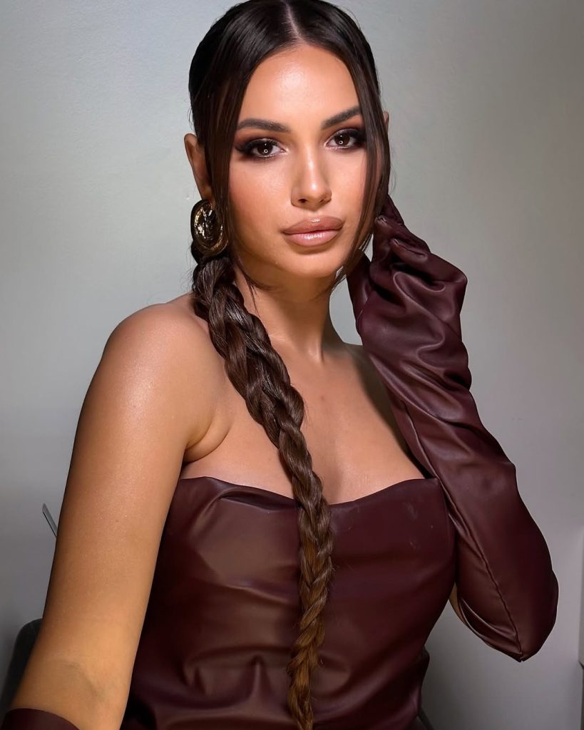 This hairstyle feels strong, modern, and confident. The smooth ponytail at the crown keeps everything neat and controlled, while the thick braid adds texture and interest through the length. It’s a look that feels practical but stylish, ideal for women who like their hair to stay in place while still making a statement.