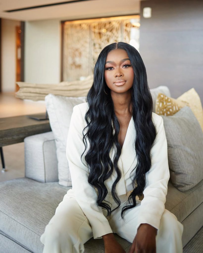 This look proves that a ponytail doesn’t have to be casual to be stunning. The hair is gathered low and sleek at the crown, then flows into sculpted, glossy waves that feel almost couture. It’s refined but not stiff, modern but still soft. This look is very stylish right now, especially for women who are embracing their long hair in a more intentional way. It’s the kind of style that turns heads quietly—no drama, just confidence.