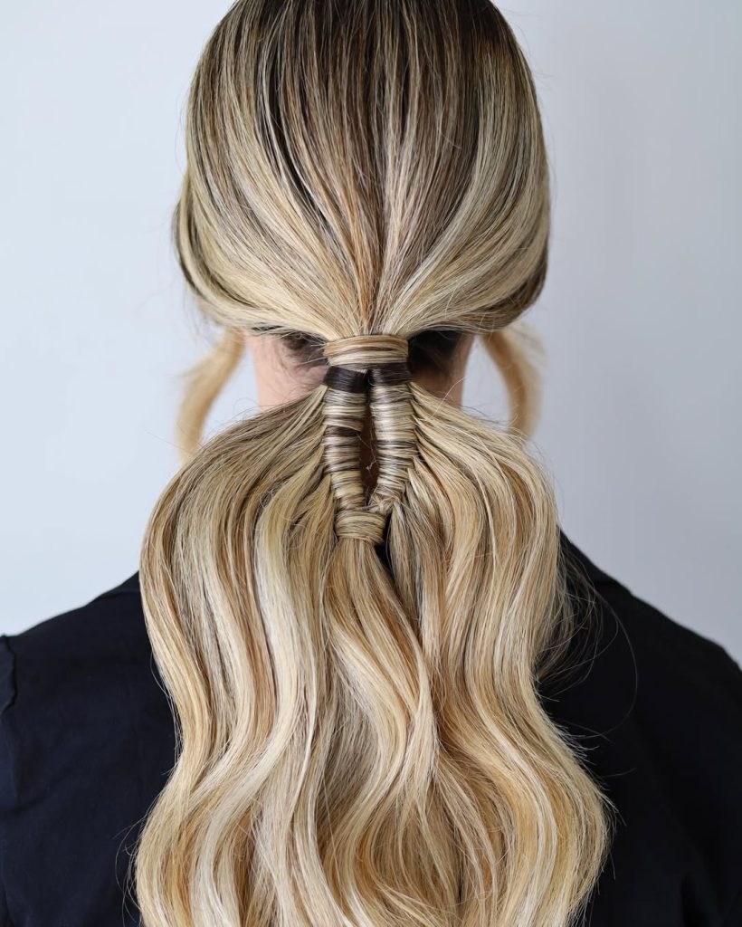 28. Voluminous Wavy Ponytail for Elegant Occasions
