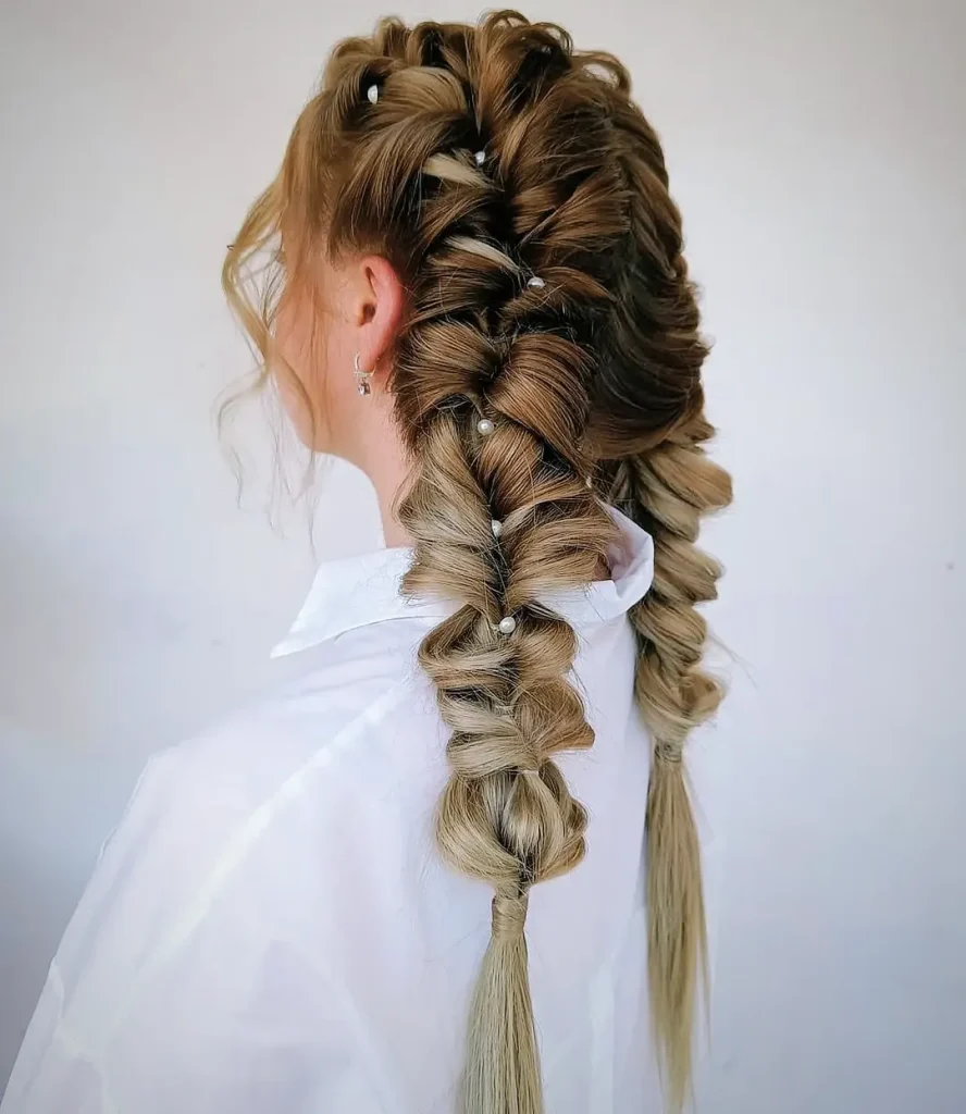 This style is wonderful for curly or thick hair and works beautifully for easy, cute school looks, casual parties, or daytime events. Light teasing at the crown and gently pulling the braid apart gives that effortless finish. It’s low-pressure, expressive, and perfect for women who love length but want something relaxed and wearable.