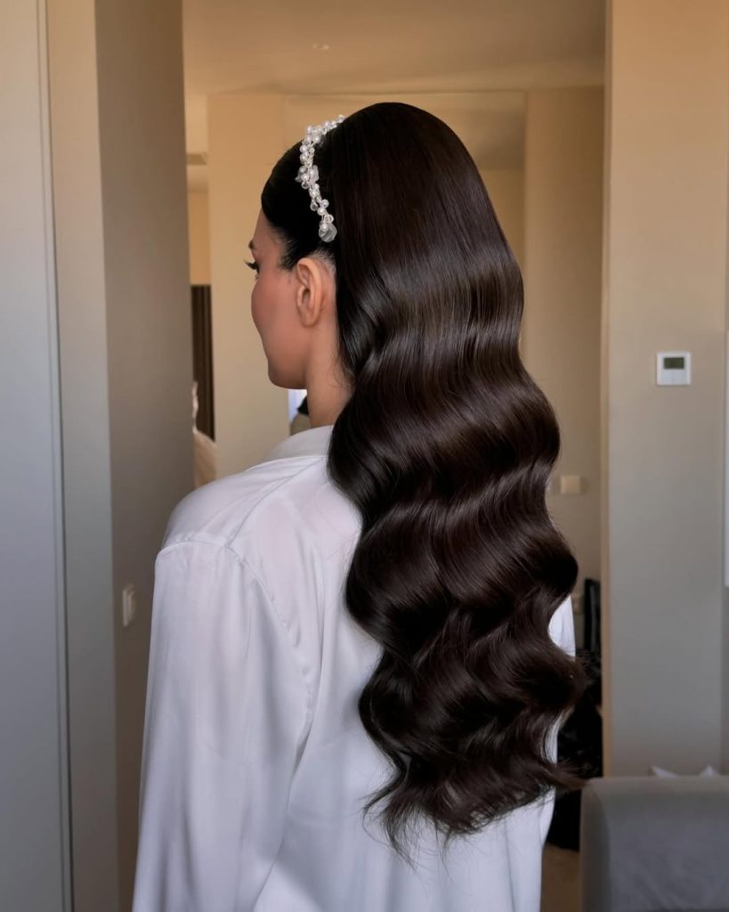 This style is especially flattering for women who enjoy classic beauty with a modern edge. It works well on straight or softly curly hair and is ideal for wedding events or formal evenings. Set the waves gently and brush them out for a smooth, cohesive finish that feels timeless and confident.