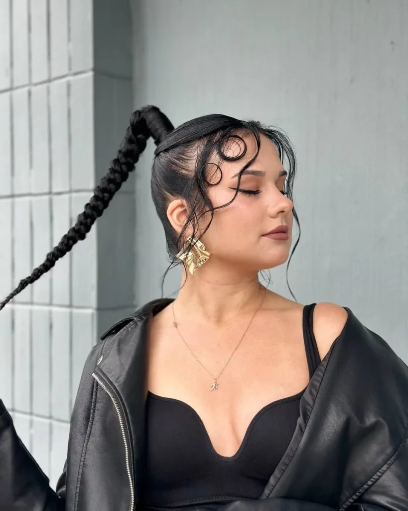 This hairstyle feels bold, modern, and quietly powerful. The high braided ponytail lifts the entire look, giving long hair a strong silhouette while still allowing softness around the face. Those delicate tendrils soften the structure and add movement, creating a balance between edge and elegance. It’s confident without being flashy, and it feels especially refreshing for women who want their length to look intentional and current rather than simply long.