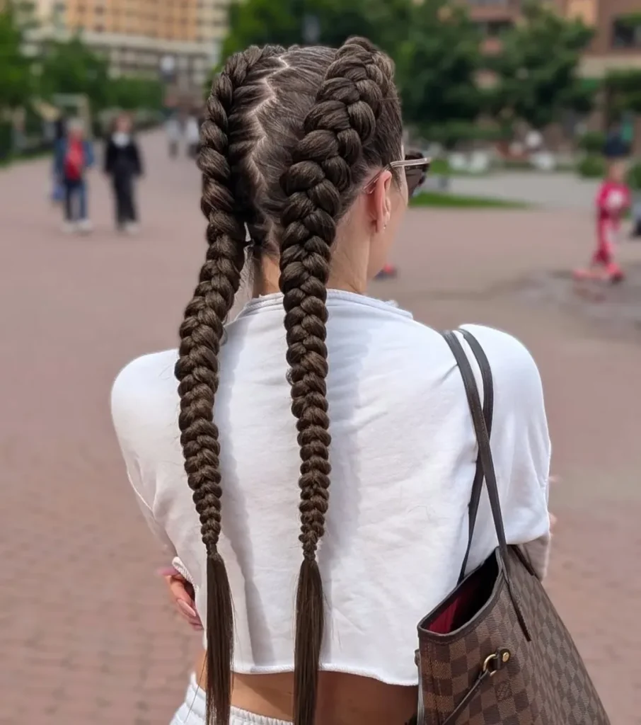 There is something youthful and quietly confident about this look. The clean center part and perfectly balanced braids feel organized, calm, and intentional. It brings a sense of serenity that highlights the beauty of long hair without feeling overly styled. This hairstyle feels practical but stylish—the kind of look that works just as well for everyday life as it does for more casual outings.