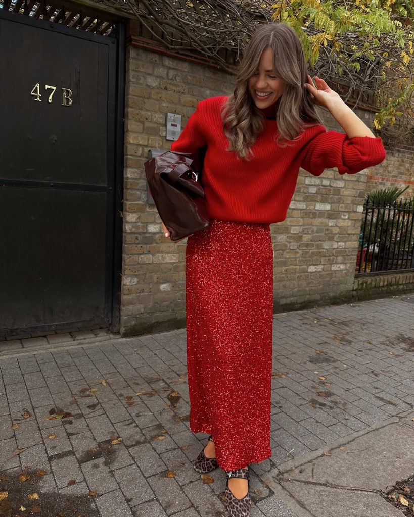 13. Red Sweater & Sequin Skirt Festive Mix