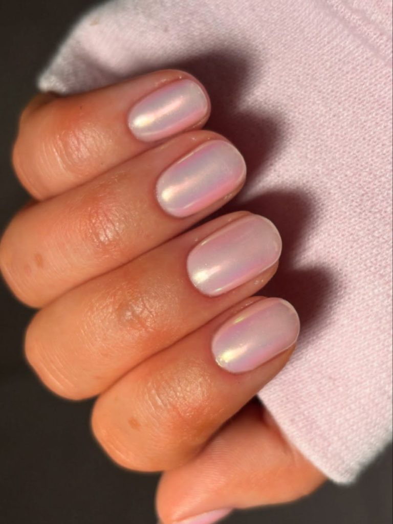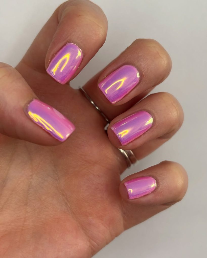 26. Iridescent Short Pink Chrome Nails