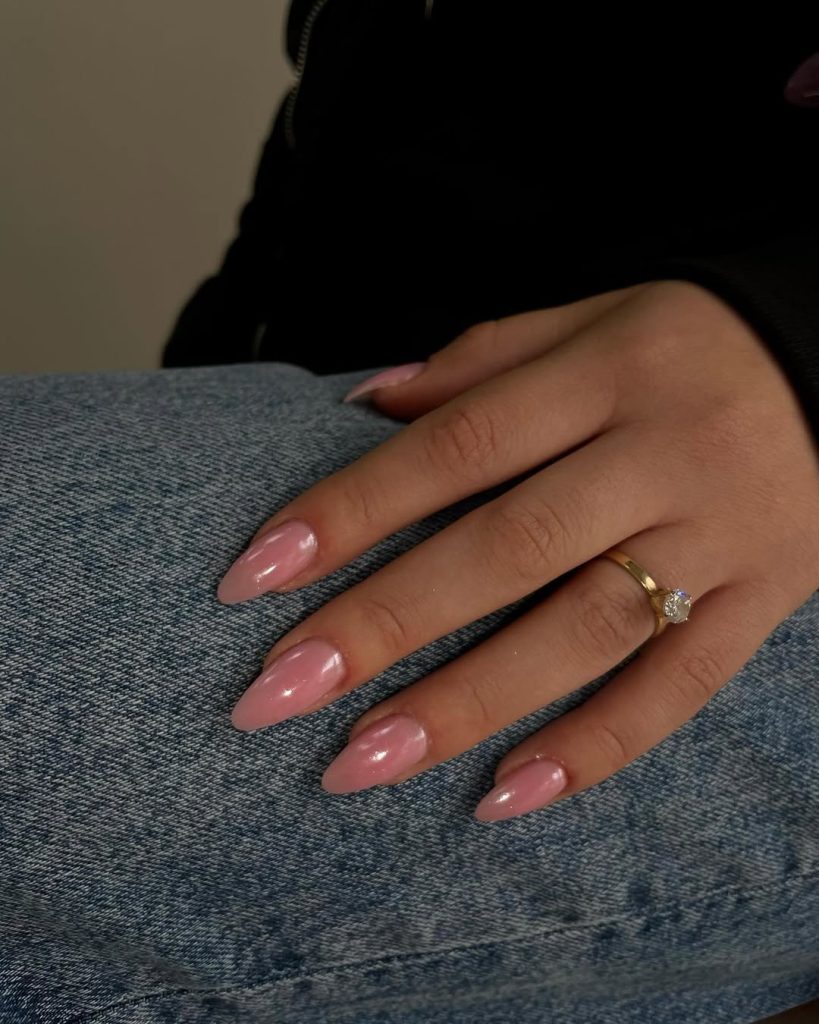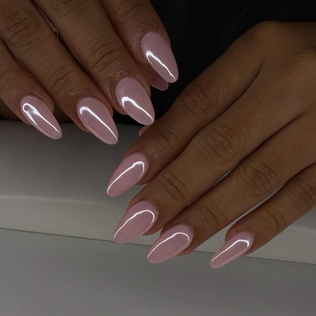 1. Light pink chrome almond nails
