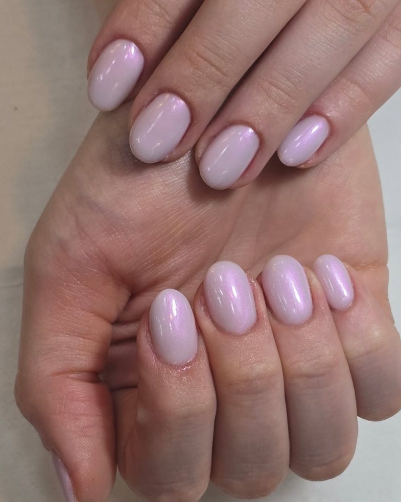 18. Milky pink chrome short nails
