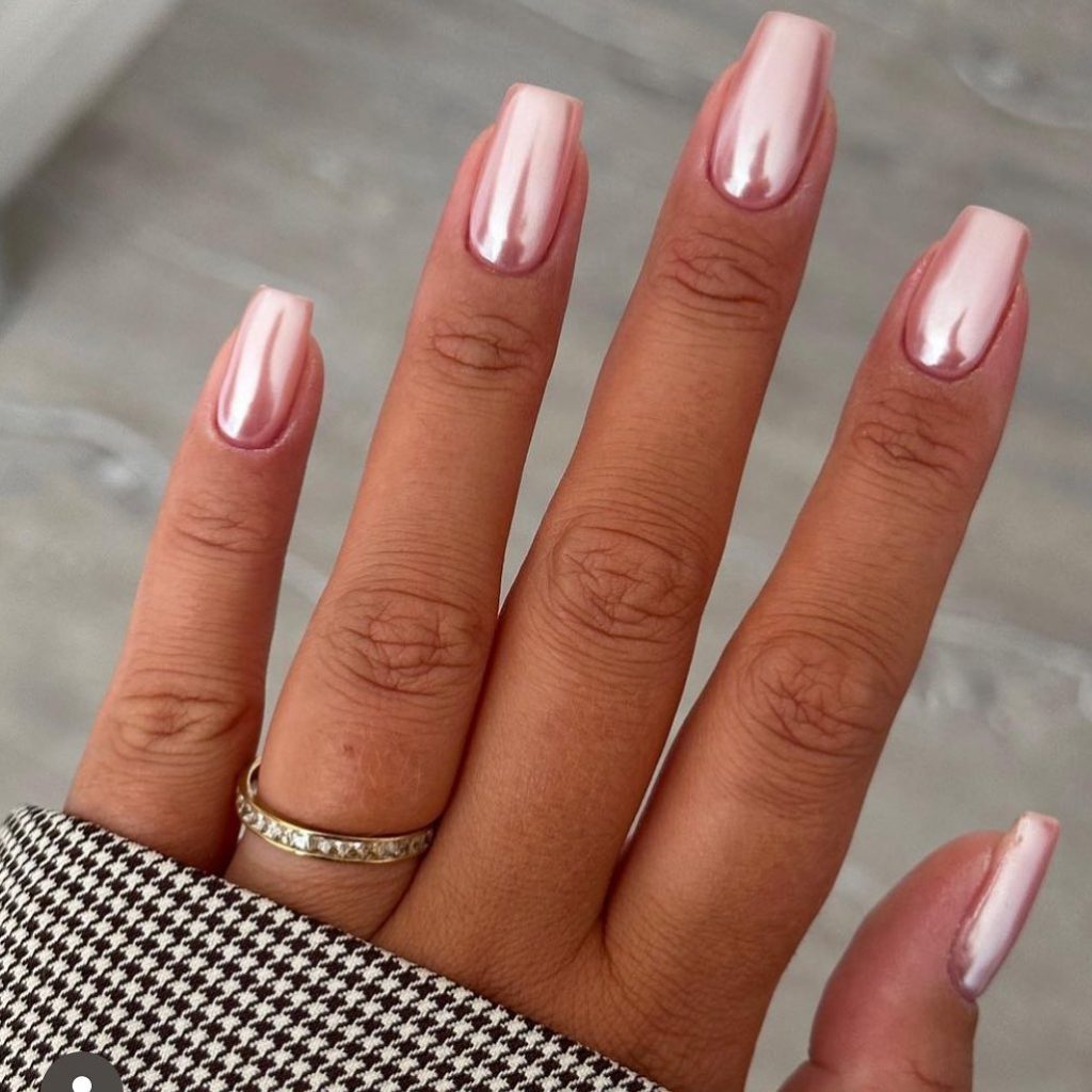 9. Natural pink chrome square nails