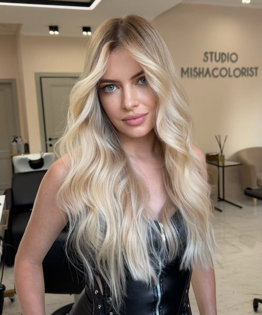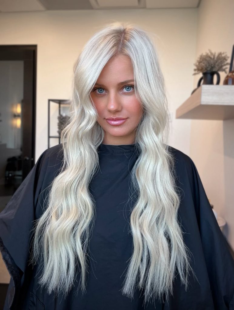 15. Bright Platinum Blonde with Long Soft Waves