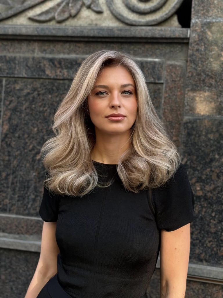 This style works especially well for medium to thick hair that can hold soft movement. It’s a wonderful option if you love a refined look but don’t want anything too structured. A wide-barrel curling iron or loose blow-dry enhances the flow, and regular toning keeps the Color fresh for 2026 without losing softness.