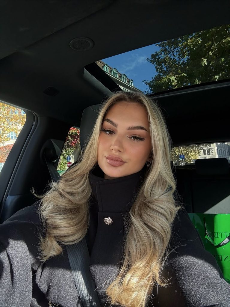 This Bright platinum blonde makes a statement while still feeling refined. The long, Soft waves add movement and femininity, balancing the intensity of the Color with elegance. It feels bold but not harsh—confident, fresh, and undeniably modern. There’s a clarity to this blonde that reflects a strong sense of personal style.