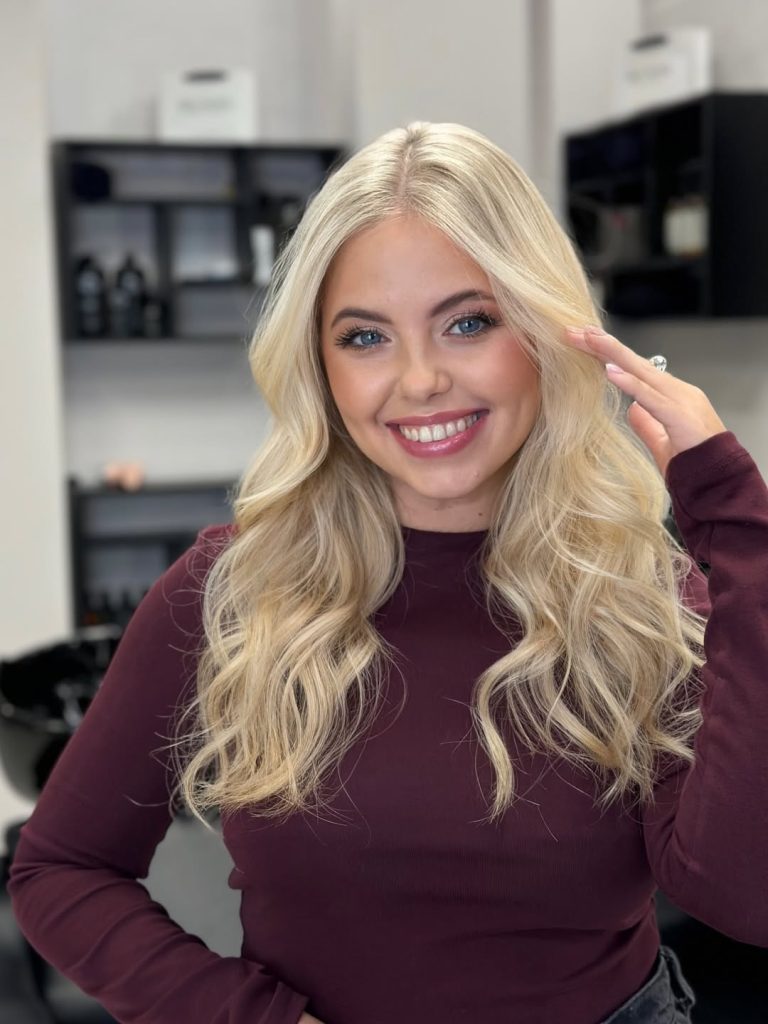 This Bright blonde has a joyful, almost sunlit quality that instantly lifts the mood. The gentle waves add softness and dimension, while carefully placed Highlights create depth without looking overdone. There’s a playful confidence here—feminine, relaxed, and full of Inspo for anyone wanting a change that still feels natural. It’s that kind of Color that makes you smile when you catch your reflection.