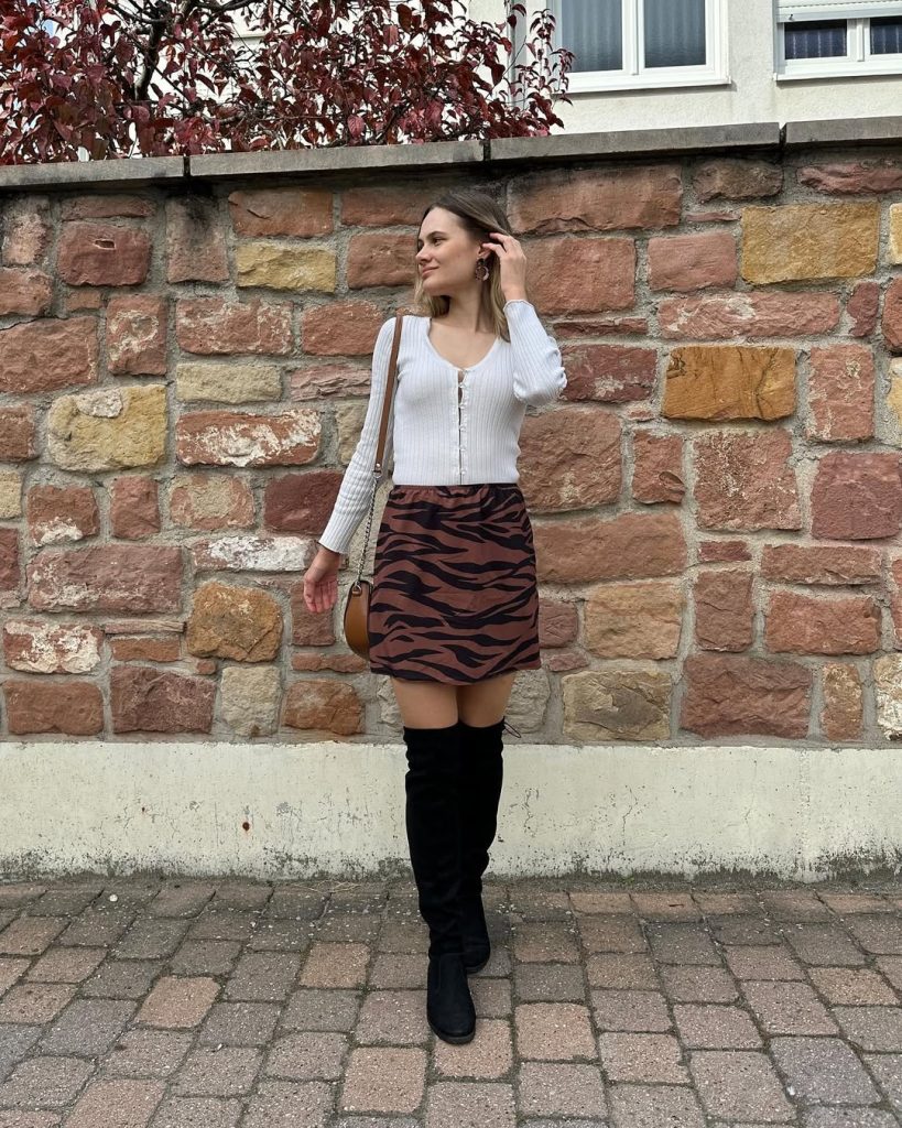 2. Zebra Print Mini with Tall Boots: Polished but Playful