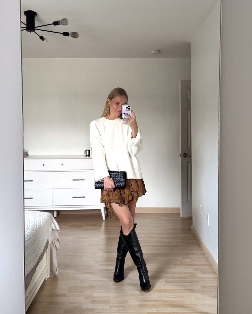 4. Relaxed Sweater & Ruffled Mini: Soft, Feminine Ease
