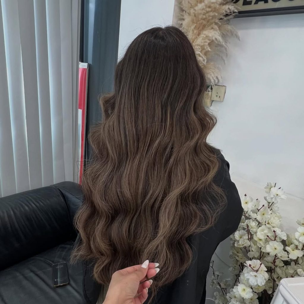 This shade feels like the perfect balance between comfort and sophistication. A deep Chocolate base infused with Cool ash undertones gives the Color a grounded richness, while the flowing layers create that touchable, bouncy movement we all secretly love. It’s dramatic in the best way—full-bodied, luminous, and undeniably feminine. The Soft waves add dimension without looking overstyled, making it feel elegant but still completely wearable.