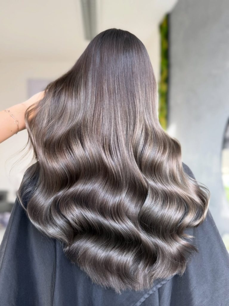 If you’ve ever wanted hair that feels like silk when it moves, this Cool Espresso-inspired ash brown is it. The finish is glossy, almost liquid, with a deep Dark base that melts into a soft, smoky dimension. It’s glamorous without being dramatic, and it carries that timeless energy of Hollywood waves—mature, sophisticated, and just a little bit mysterious. It proves that ash tones don’t have to feel flat; they can absolutely glow.