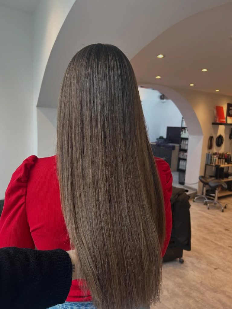 This style is ideal for women with straight or fine hair who want a short-to-long length that looks thicker and healthier. The subtle Balayage effect gives movement even in a sleek finish. Use a heat protectant and flat iron in small sections for that glassy texture. It’s proof that sometimes the most powerful aesthetic is the most understated one.