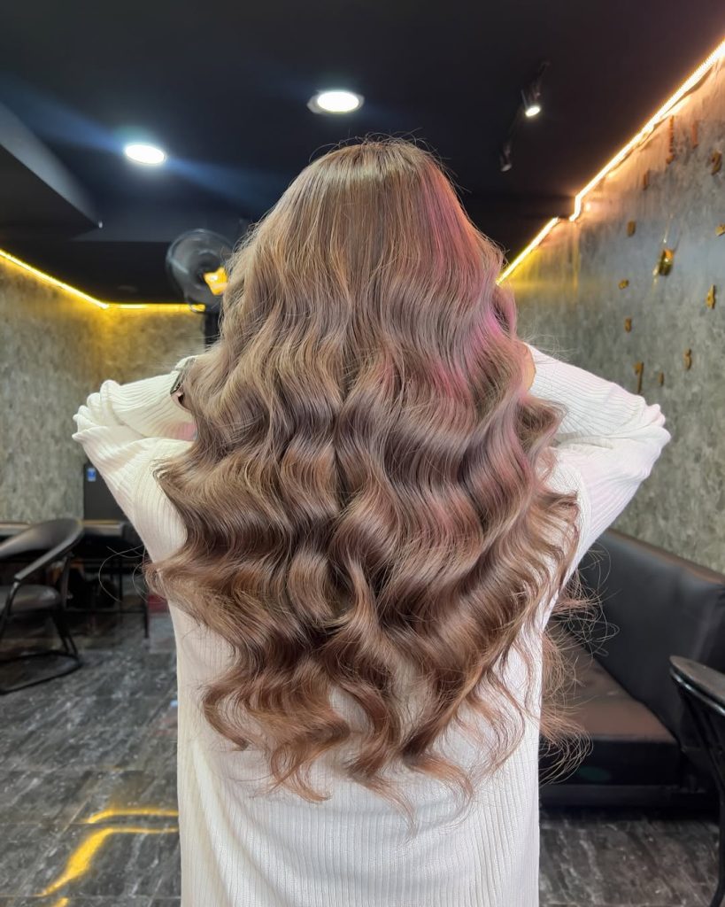 What makes this special is the way the highlights are blended—no harsh lines, just seamless transition. It’s ideal for anyone exploring Color ideas that feel elevated but are not dramatic. Style it with a medium barrel iron to showcase the Color with highlights and keep the Smokey undertone visible in every curve.