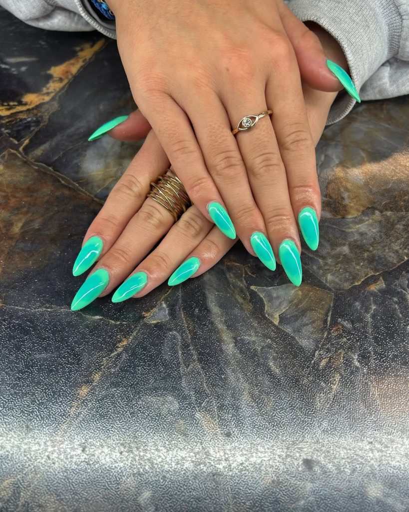 16. Mint Green Almond Nails with a Sleek Glossy Finish