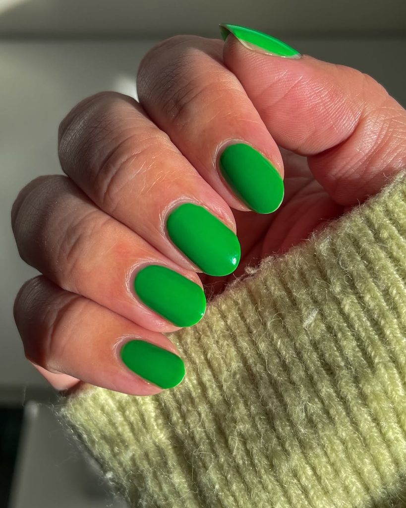 27. Bright Green Short Nails with a Clean, Modern Finish