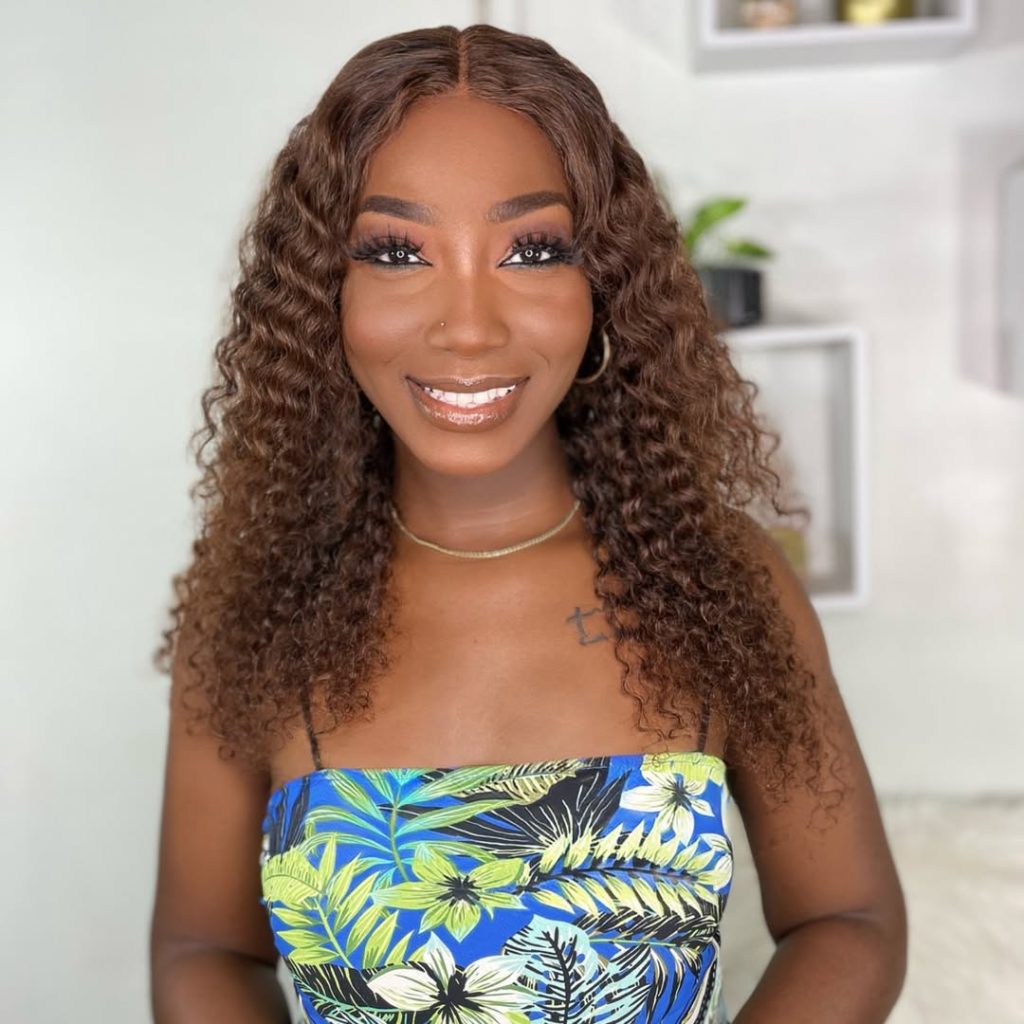 This cut is especially flattering on women with medium-thick hair since the curls hold their bounce and volume. The chestnut shade blends seamlessly with most skin tones, and it doesn’t require high-maintenance upkeep. Just a little curl cream and a diffuser can bring these curls to life in minutes.