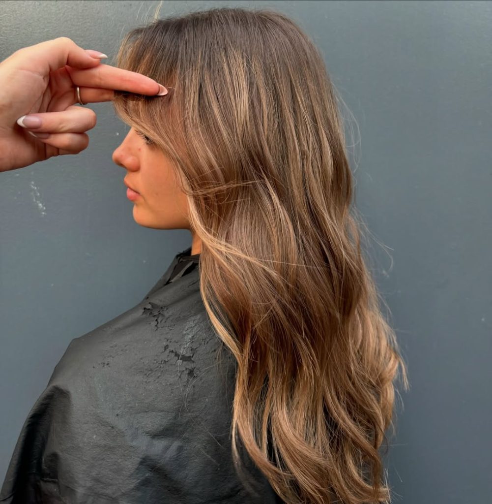 Balayage is what really elevates this style. The honey highlights melt naturally into the brown, adding light without harsh lines or constant upkeep. It’s ideal for medium to long hair and works especially well if you enjoy loose waves or air-dried texture. If you’re searching for a change that feels fresh but not drastic, this honey-colored approach is a beautiful place to land.