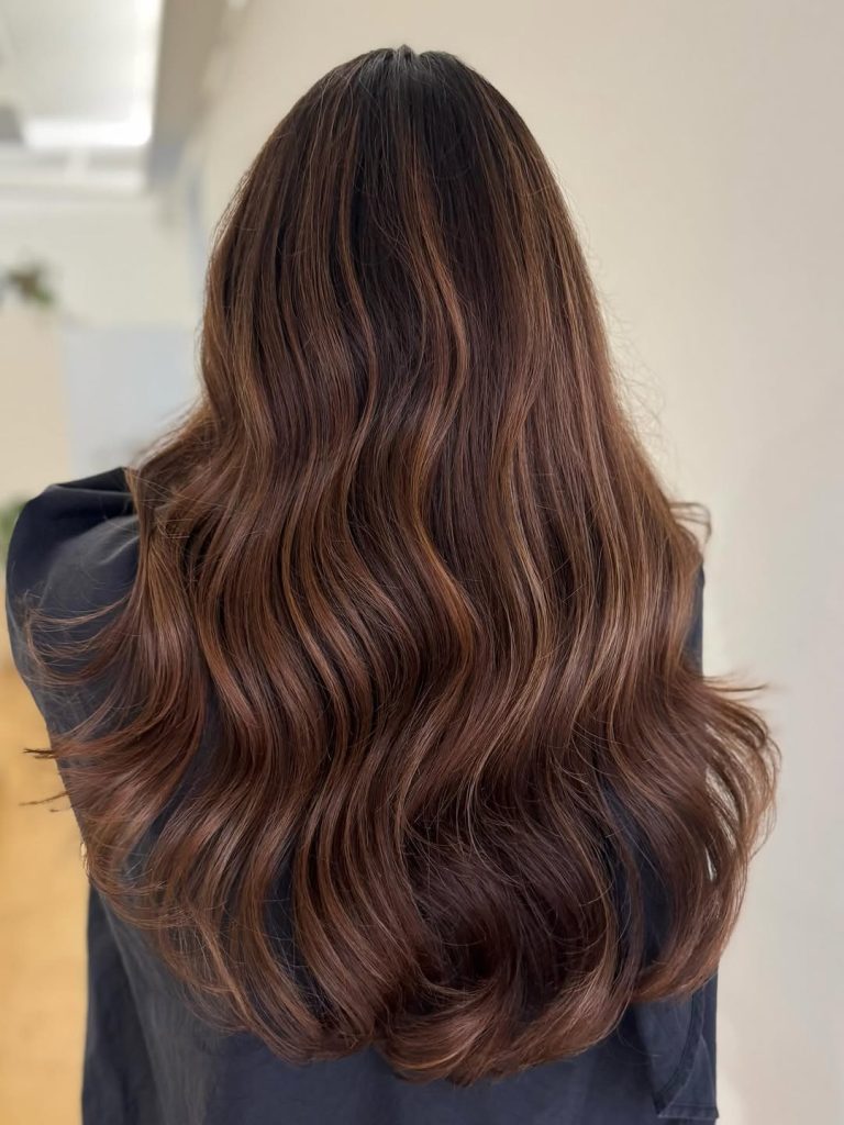 This style is especially flattering for long hair with a naturally smooth or slightly wavy texture. The subtle color transitions add depth without harsh contrast, making it a beautiful choice if you want light without obvious blonde highlights. Styling is simple: loose waves or a soft blowout enhance the dimension. It’s ideal if you’re craving color ideas that feel elegant, wearable, and timeless rather than trendy.