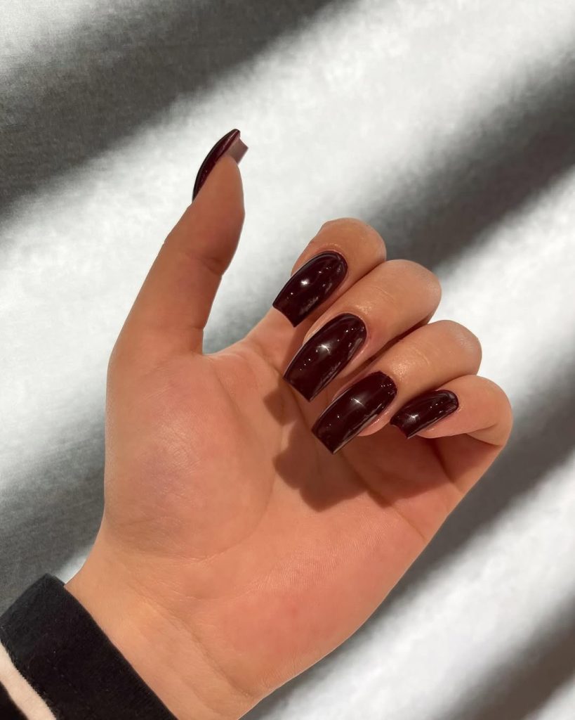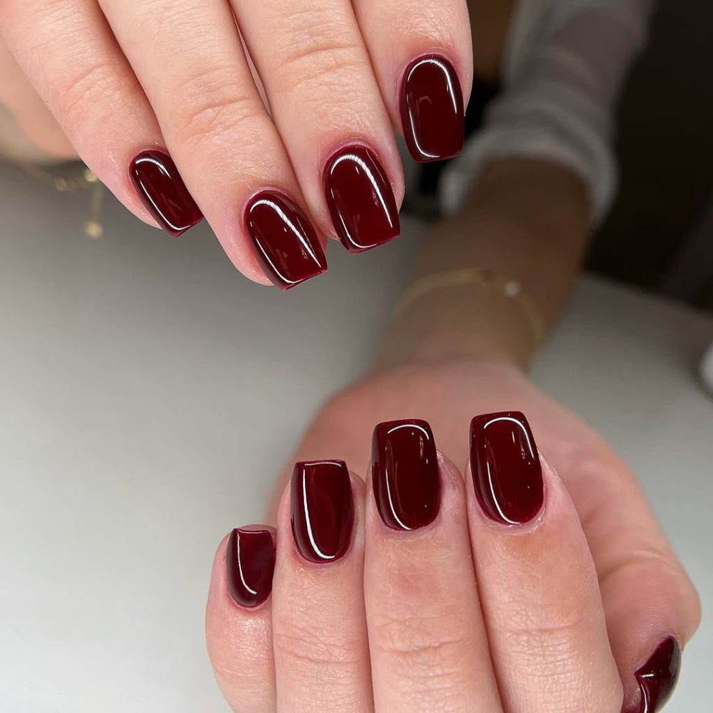 11. Dark Cherry Square Nails with a High-Gloss Finish