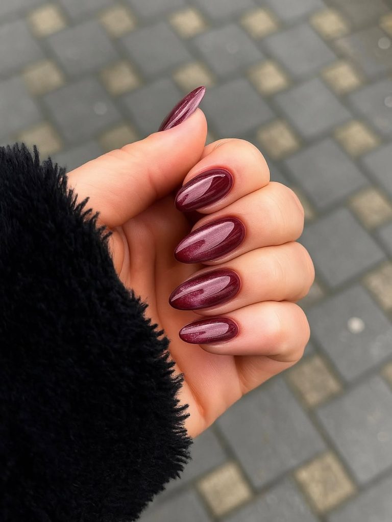 21. Dark Cherry Almond Nails with a Soft Everyday Shine