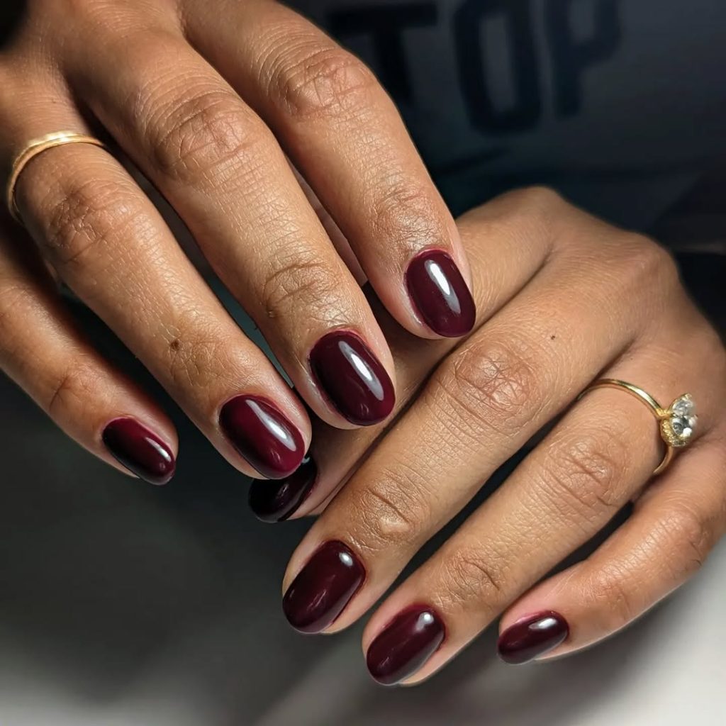 28. Dark Cherry Short Rounded Nails for Everyday Comfort