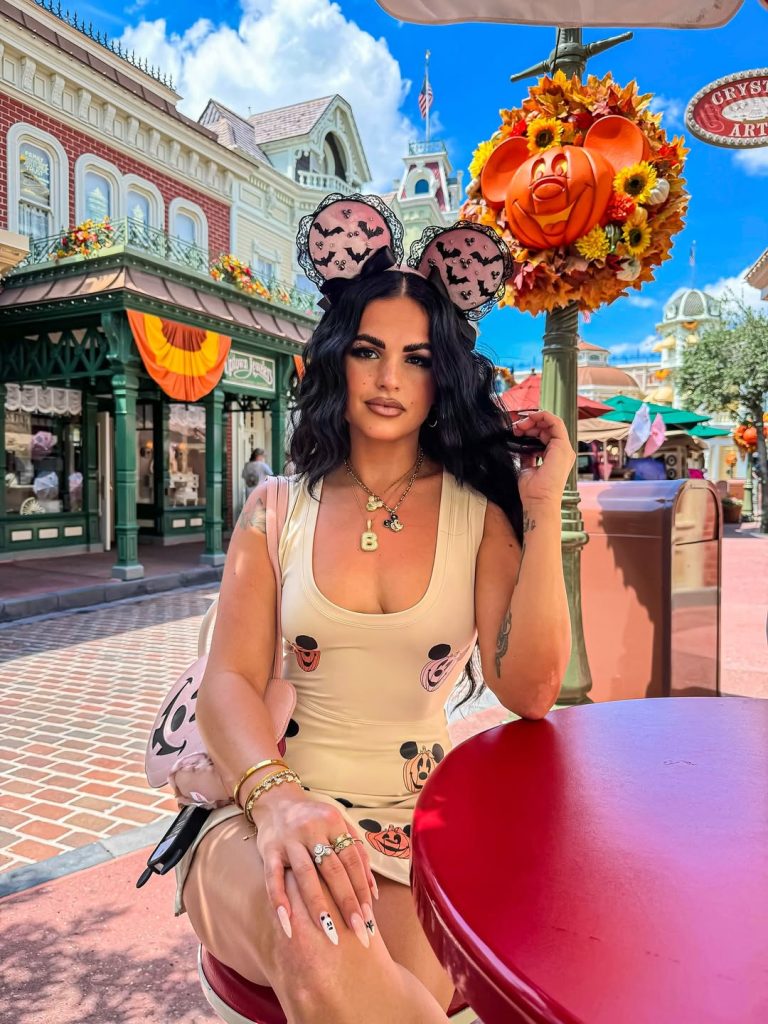 This look captures a refined fall mood while staying fun and casual enough for long strolls around the park. Great for November visits or daytime Disney brunches. To personalize the style, a lightweight cardigan in blush or pink enhances the palette without overwhelming it. Avoid heavy boots—strappy sandals or white sneakers keep the outfit comfortable and summer comfy on warm Florida days. Influencers like The Disney Style Collective often champion this blend of feminine and festive design.
