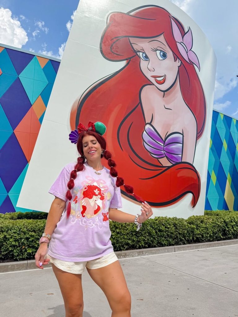 A lavender Ariel T-shirt paired with textured shorts creates a cheerful summer casual outfit full of bright, optimistic energy.