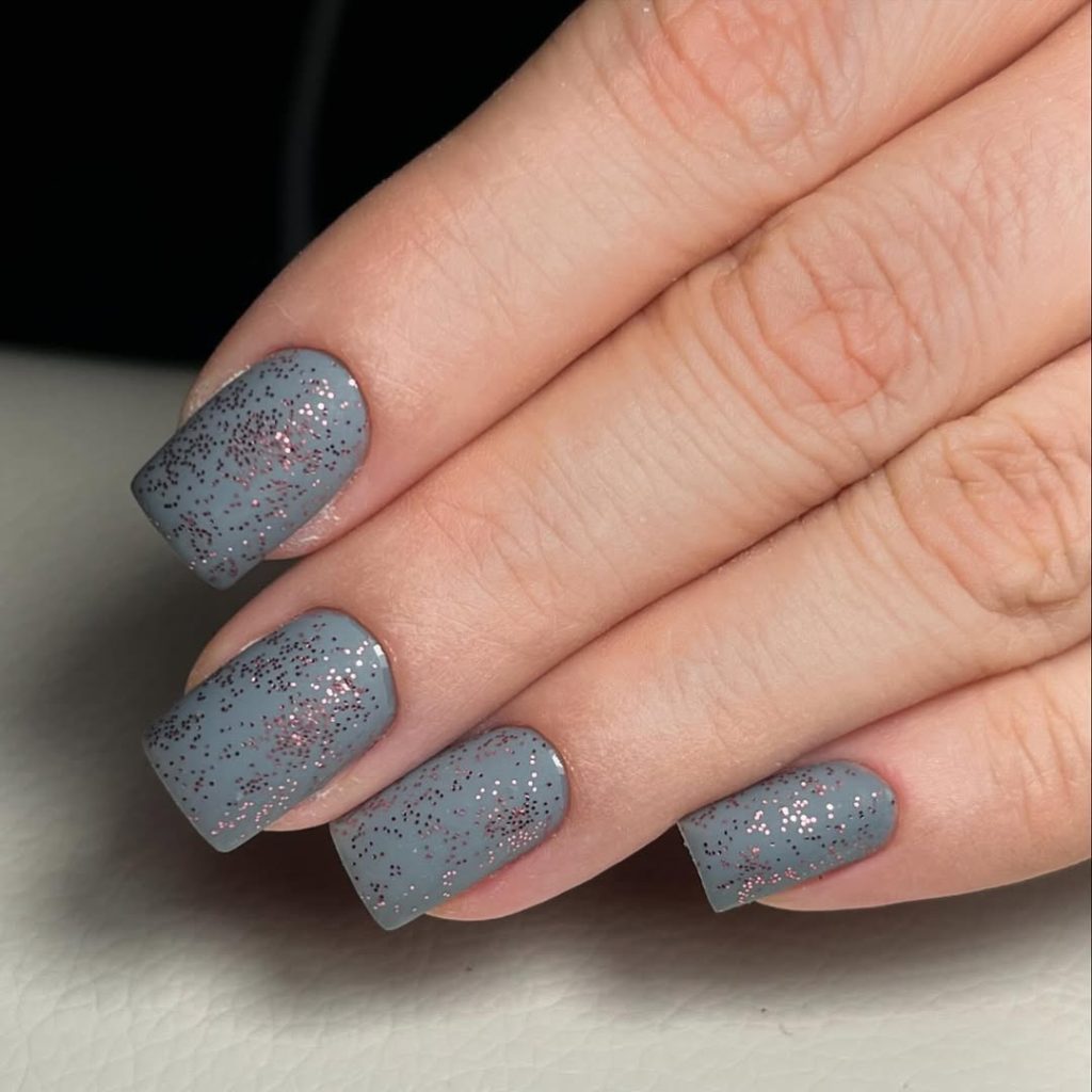 Cool and captivating, this dusty blue matte manicure adds just the right amount of sparkle. The scattered glitter shimmers like a frosty sky, giving your nails a hint of festive charm without overwhelming the look. It’s fresh, elegant, and totally aligned with the subtle-glam trend of matte nail ideas 2026.