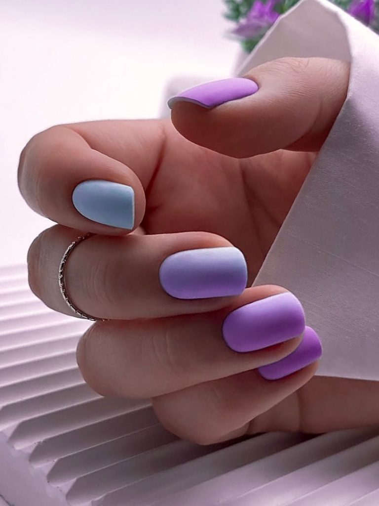 25. Pastel Ombre Matte Nails in Blue and Lilac