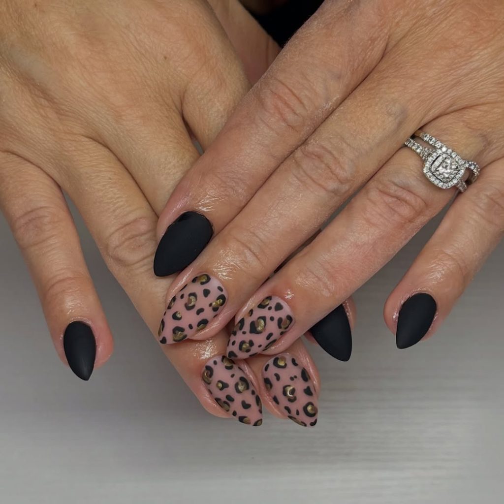 Bold, wild, and irresistibly chic—this matte nails idea for 2026 mixes deep black with leopard print for a daring contrast. The sleek matte black nails bring edge, while the animal print adds playful sophistication. It’s confident and glamorous, a perfect blend of power and personality.
