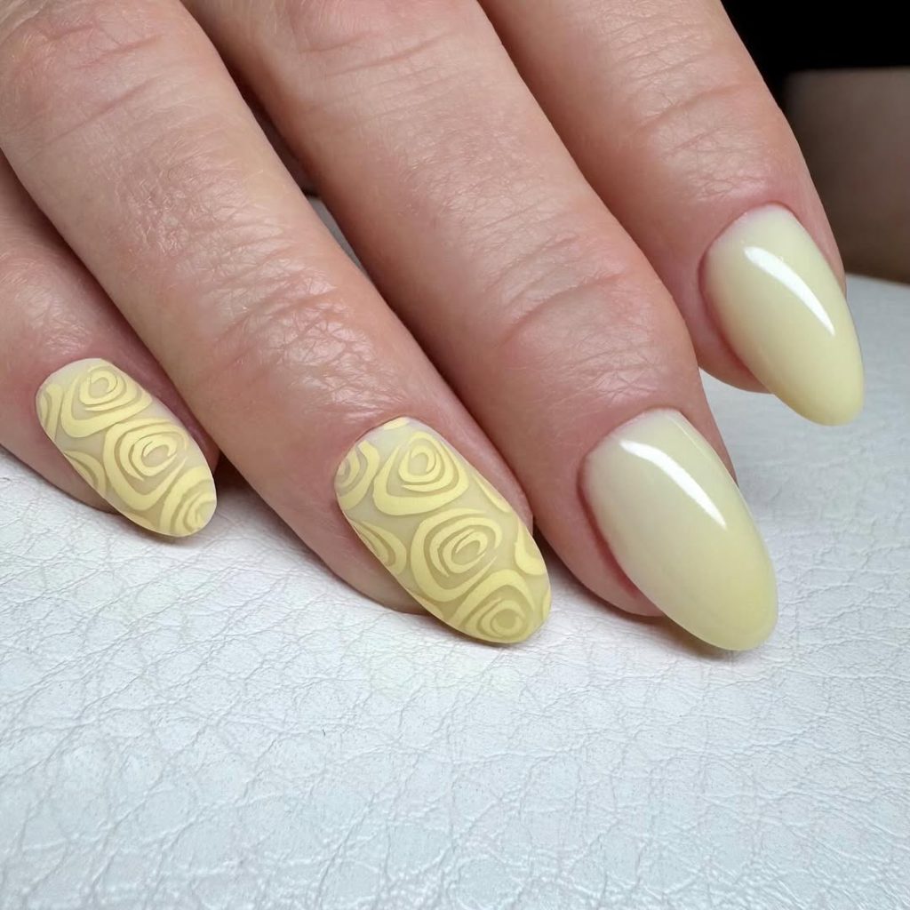 Gentle, fresh, and irresistibly cute, this matte nails idea for 2026 features pale yellow tones embossed with subtle rose swirls. The 3D pattern creates a soft texture that feels both vintage and modern, giving your nails a delicate sculpted look. It’s the kind of manicure that brightens any outfit and adds an instant dose of joy.