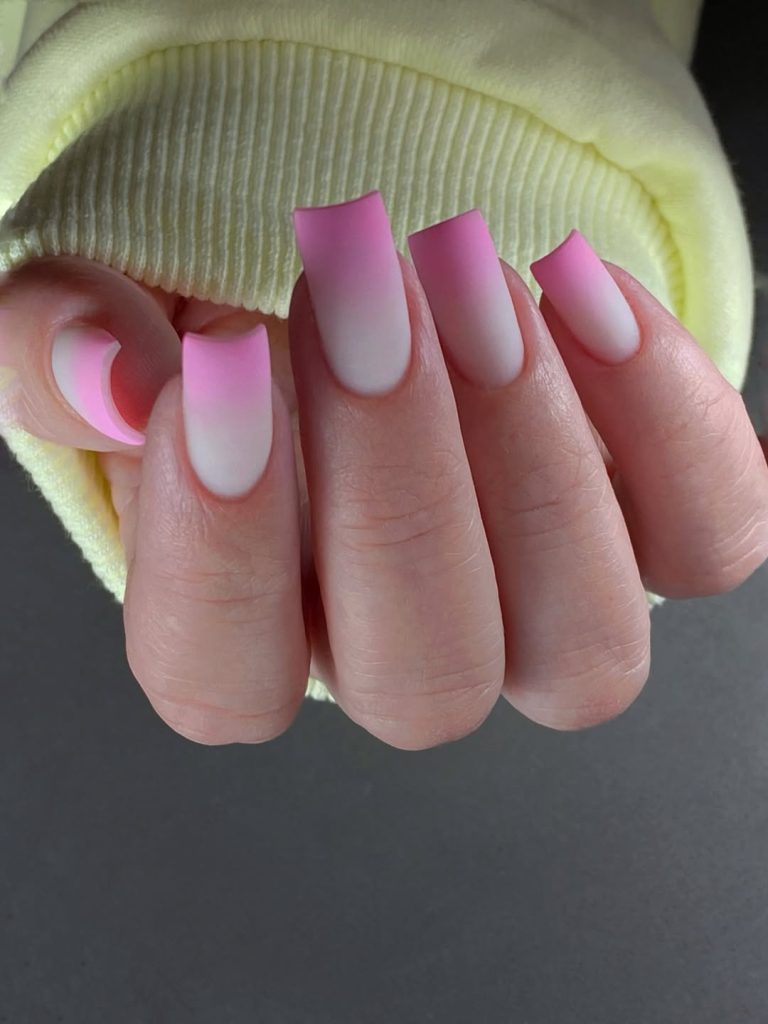 These pink and white ombre nails bring soft femininity with a fresh modern edge. The matte finish gives a smooth, dreamy texture that feels effortlessly chic, while the gradient fades seamlessly—like cotton candy meeting minimalist design. It’s a subtle yet stylish choice that radiates confidence and calm.