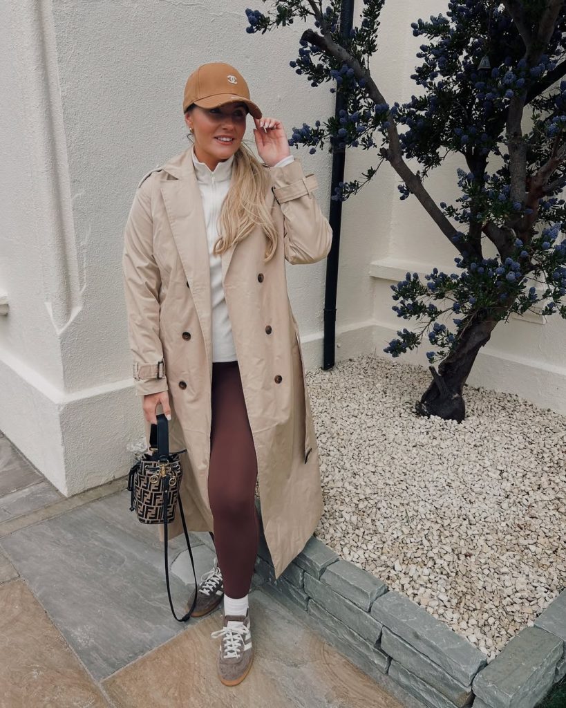 Soft neutrals and classic layering give this outfit a refined, effortless feel that works beautifully for unpredictable spring weather.
