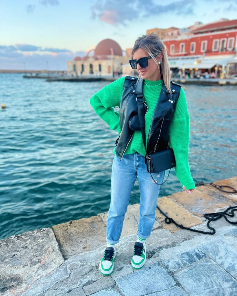 - Neutral sneakers, practical and comfy