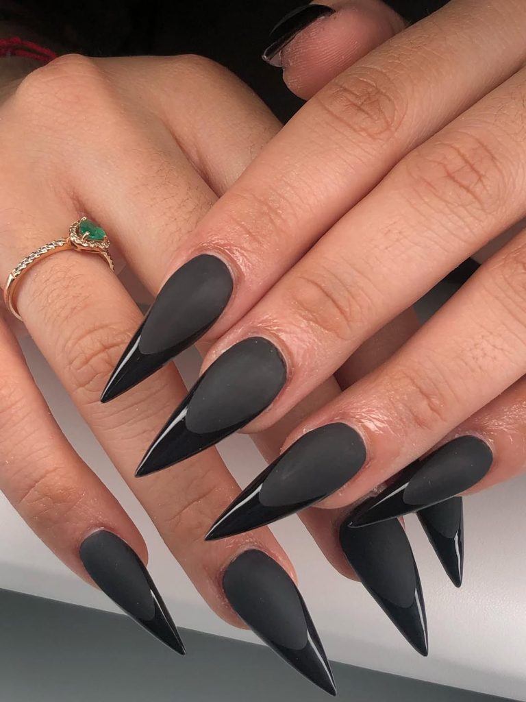 This style suits best during autumn and winter, provided you are interested in strong nail concepts with a Gothic inspiration. They look great with a leather jacket, red lip color, or an all-black dress. This style delivers if you need a confidence-striking manicure.