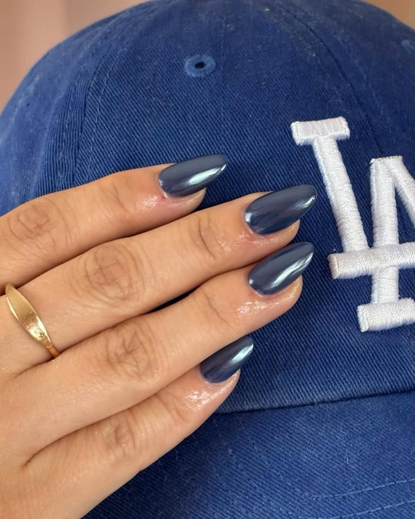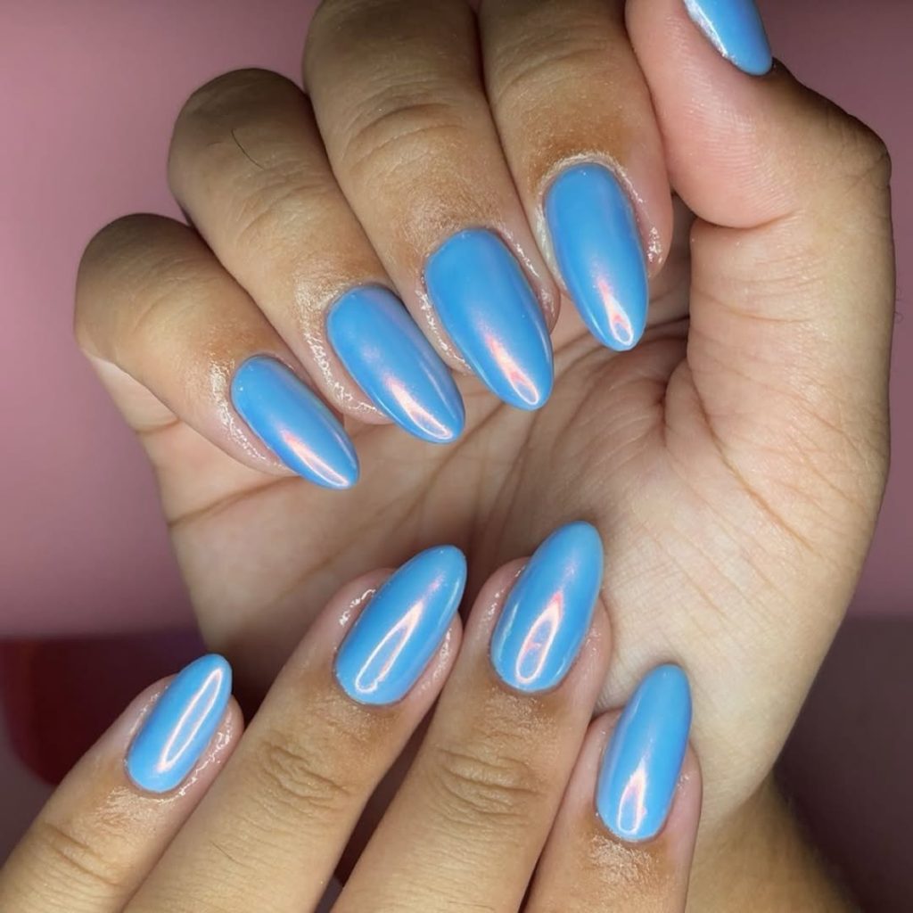 This manicure is perfect if you want something chic without being too bold. The almond length is easy to manage, while the shade of blue pairs with everything from neutrals to brights. A reliable, stylish choice for everyday glam.