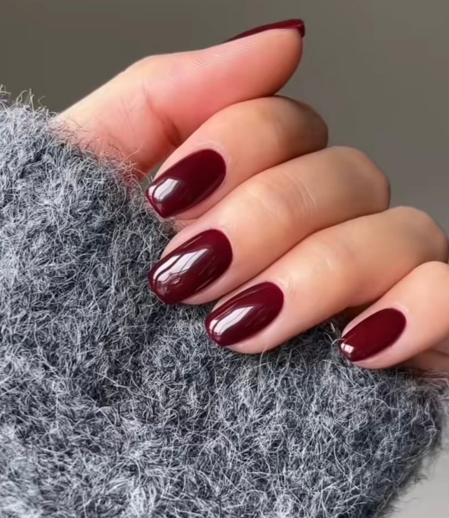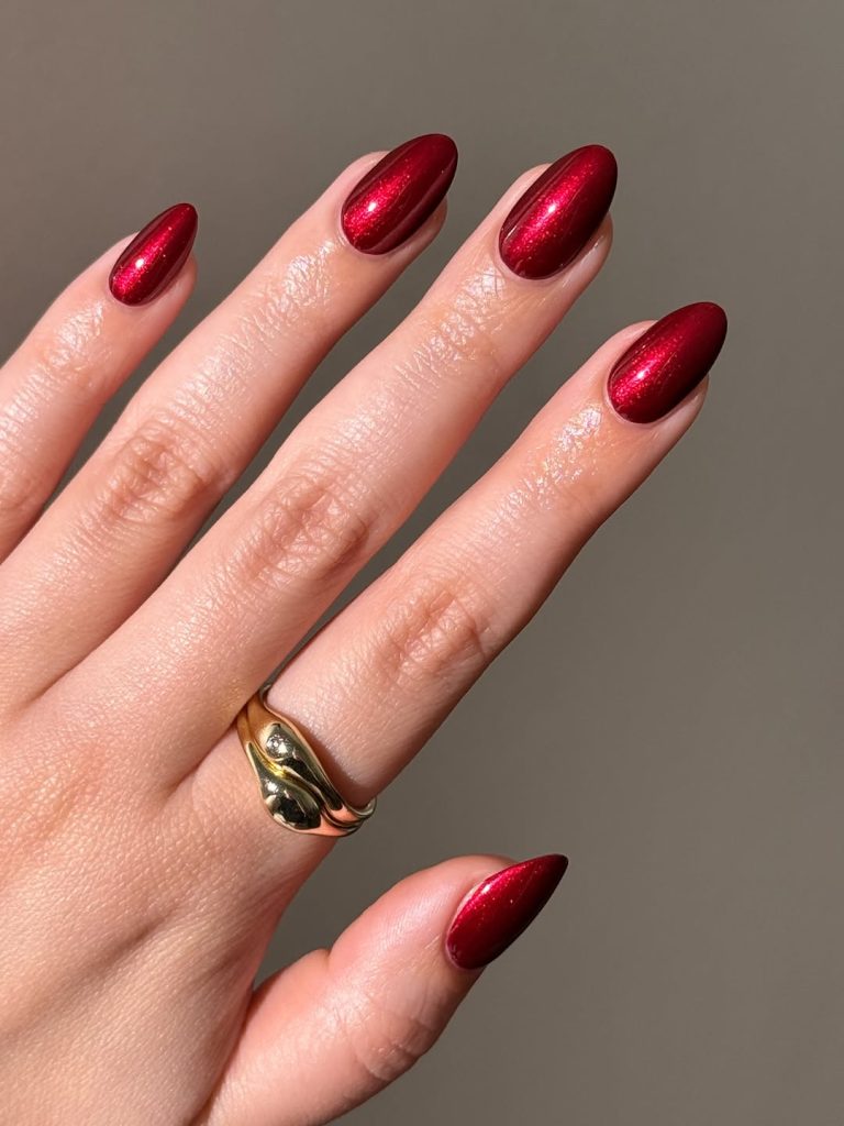 This is cherry red at its most timeless. Smooth, glossy, and beautifully balanced, this manicure feels elegant without effort. It has that “always appropriate” quality—equally perfect for everyday wear, special dinners, or moments when you simply want to feel put together. There’s a calm confidence in this simplicity that never goes out of style.